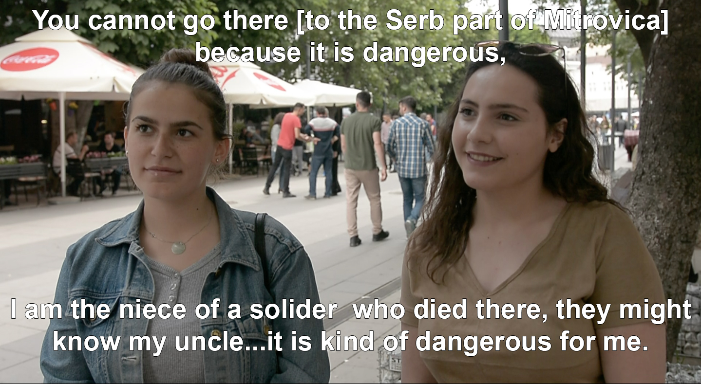 Seconds later, Diellza, who works in a café that serves the Serb community, said “I have a lot of contacts with people from the north because I work at Jaffa Place and half of our customers are from Serbia, from the other side, they’re actually quite friendly, they’re not aggressive.”