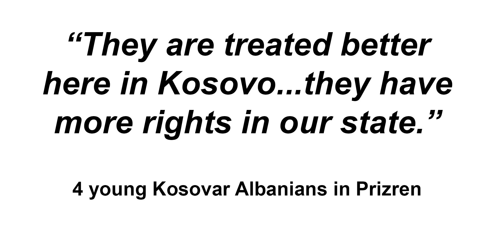 Whether Serb or Albanian, they want to find out more about the West (in particular the USA), to relate to their Western peers and to get educated, either in Kosovo or abroad so they can gain the skills to find a better life and improve the lives of their communities.